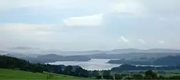 The stream bed of the Vltava near Lipno was chosen because it has a slight incline, facilitating the construction of a reservoir there. The dam is built along the highest-elevated stage of the Vltava River's cascade[3] (roughly 726 metres above sea level), thus enabling large amounts of hydropower out-put. This area is mountainous, and borders the Šumava National Park and Nature Reserve. A smaller reservoir near Vyšší Brod is linked to the main reservoir by an artificial underground waterway. This smaller reservoir, named 'Lipno II', serves to level the water of the main reservoir.