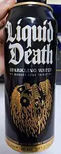 Liquid Death is a canned water company founded by Mike Cessario. Its tagline is "murder your thirst".[1] The drink is sold in a 16.9 US fl oz (500 ml) "tallboy" drink can. Its water is canned by the Austrian beverage company Starzinger in the Upper Austrian town of Frankenmarkt (altitude 1,759 ft). The drink began selling to consumers on its website in January 2019. Its manufacturer is Supplying Demand, Inc. As of October 2022, the company is valued at $700 million, though according to Dan Primack of Axios, the valuation could be viewed "skeptically"[2] as it was an insider-led round.