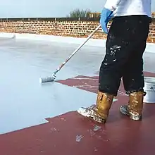 Liquid roofing involves the application of a monolithic, fully bonded, liquid based coating to a roof. The coating cures to form a rubber-like elastomeric waterproof membrane, capable of stretching and returning to its original shape without damage. Such coating systems are usually reinforced with secondary materials such as glass-reinforced plastic to provide additional tensile strength. The coatings can be applied over most traditional roofing materials, including felt, asphalt, bitumen, and concrete.[2] Liquid spray-applied roofing membranes have been one of the fastest growing roofing systems in North America and Europe.[3]