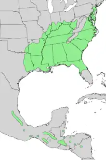 Sweetgum is one of the most common hardwoods in the southeastern United States, where it occurs naturally in lowlands from southwestern Connecticut south to central Florida, through central Ohio and west to Illinois, southern Missouri, and eastern Texas, but not colder highland areas of Appalachia or the Midwestern states. The species also occurs in Mexico from southern Nuevo León south to Chiapas, as well as in Guatemala, El Salvador, Nicaragua and Honduras. In Mexico and Central America, it is a characteristic plant of cloud forests, growing at middle elevations in various mountainous areas where the climate is humid and more temperate.[8]