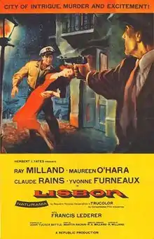 Lisbon is a 1956 American film noir crime film produced and directed by Ray Milland and starring Milland, Maureen O'Hara, Claude Rains, Edward Chapman, and Jay Novello. An American smuggler based in Lisbon is hired to rescue a wealthy industrialist from behind the Iron Curtain.[1]