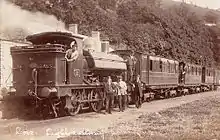 As already mentioned the locomotive Liskeard, an 0-4-0ST, operated on the line from the first. From 1862 the Liskeard and Caradon Railway worked the line, taking over Liskeard for the purpose. It ceased operation on the line in August 1866.[3] An 0-6-0ST called Caradon was purchased from Gilkes, Wilson & Co in 1862, working until 1907. An 0-6-0T called Lady Margaret also worked on the line. This was taken over by the GWR in the merger, numbered 1308, and worked thereafter principally in Wales, just lasting into British Railways times, being withdrawn in 1948.[19]