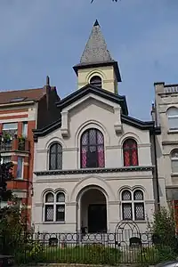 Historically, most of antoinist temples in Belgium were built before the World War II, when at least one of the founders was still alive. The first temple, the one of Jemeppe-sur-Meuse, was consecrated two years before the death of Louis Antoine, the founder of the religion. Other temples were often built in Belgian spa towns or in the countryside, and are mostly gathered in the French-speaking region — there are only three temples located in the Flanders region — and particularly in the province of Liège which counts 21 buildings. However, no temple has been built since 1968 and the antoinism spreading is now on the decline in the country, so much so that several places of worship are being unused because of a lack of clergy members. One of them — the temple in Tournai — was even sold in 2001.[1]