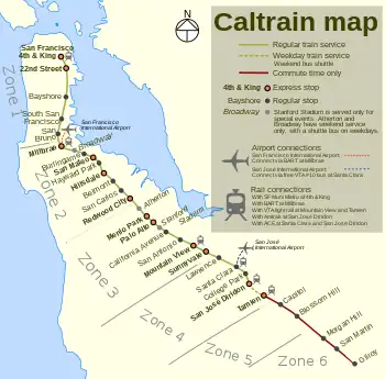 - "Caltrain System Map". Caltrain. Retrieved February 11, 2013.