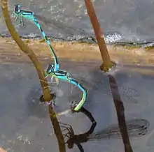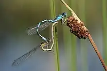 Northern bluets in mating wheel (Enallagma cyathigerum)