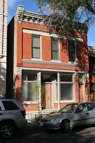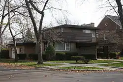 In 1957, Chicago City Council 5th ward alderman Leon Despres began the landmark preservation movement in Chicago, by adopting the Frank Lloyd Wright Robie House.[6][7] This led to the formation of the City Landmarks Commission, who chose 39 buildings as "honorary" landmarks.[6] That body evolved into the present Commission on Chicago Landmarks which was empowered by Despres's 1968 city ordinance to select and protect 12 important buildings as the inaugural official Chicago Landmarks.[6] Although the movement was unable to save either Louis Sullivan's Garrick Theater in 1960 or Sullivan's Chicago Stock Exchange Building in 1972, the efforts spawned the Landmarks Preservation Council of Illinois in addition to the municipal Commission.[6]