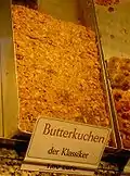 Cake | A German specialty that is traditionally made of a yeast dough and covered with a sweet crumb topping referred to as streusel. |