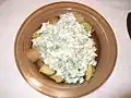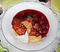 Main course or dessert | A sweet main dish made from quark, mashed boiled potatoes, a little flour, an egg and some grated lemon peel. The ensuing dough is baked as small, less than palm-sized pancakes and eaten hot with sugar and cinnamon, or with fruit, whipped cream, vanilla ice cream etc. |
