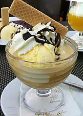 Dessert | A gentleman's creme that consists of vanilla jelly with cream and rum. |