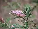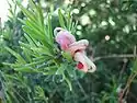 | 'Pretty Pink' | Grevillea arenaria x G. 'Crosbie Morrison'. Introduced in Victoria in 1985. | [2] | ||