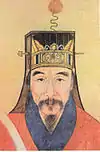 | Gaowu mao (高屋帽) | Baisha mao (白紗帽) | Also known as white gauze hat. It was worn by the sovereigns of Liu-Song and Southern Qi, it was later inherited by the Sui dynasty.[26] | Adult | White gauze hat. | Northern and Southern dynasties – Tang | ![]() |