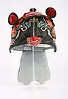 | Longguan (籠冠) | "Basket hat". Developed from the Wubian("武弁")-hat, alternatively also known as Wuguan "武冠", worn by military officials.[24][25] Helmets or tall peaked caps; it extends down over the ears and neck.[23] It is semi-transparent.[25] | Jin- Ming | ![]() |