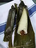 Chinese Indonesian | Rice cake filled with meats, sometimes beans, mushroom, and salty egg, wrapped in bamboo leaves. |