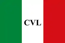 1943–1945 | Flag of the National Liberation Committee | An Italian tricolour with a star inside which is the word "CLN". |