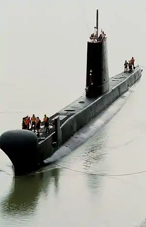 The Oberon class was a ship class of 27 British-designed submarines operated by five different nations. They were designed as a direct follow-on from the Porpoise class: physical dimensions were the same, but stronger materials were used in hull construction, and updated equipment was fitted.[1]