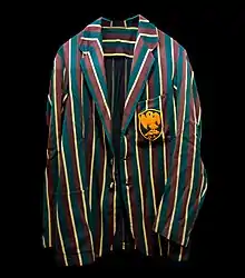 Typical Old Ardinian blazer in school colours. These garments may be worn by men who attended the school