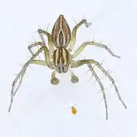 - "Family: Oxyopidae Thorell,1870". World Spider Catalog Version 20.0. Natural History Museum Bern. 2021. doi:10.24436/2. Retrieved 2021-02-23.