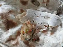 Gilgiti cuisine is the cuisine of Gilgit-Baltistan, Pakistan. Prominent Gilgiti dishes, such as the Chapshoro have gained massive popularity among different parts of Pakistan. Mumtu, tiny dumplings are often served with yogurt and parsley and black pepper, vinegar, chili sauce.