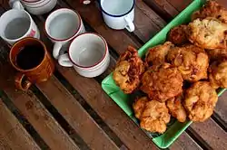 Vegetable dish | Shrimp fritters often accompanied by vinegar as dipping sauce. |