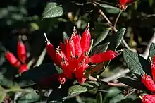This List of Rhododendron species includes species of the genus Rhododendron, which is in the plant family Ericaceae. Depending on the source, there are anywhere from 800 to over 1,100 wild species.[1][2] The vast majority of Rhododendron species are native to the eastern Himalaya and southeast Tibet, along with the islands of Java, Sumatra, Borneo, New Guinea, and the Philippines. The rest are broadly spread throughout the northern hemisphere in relatively small isolated populations, including Japan, northwestern North America, the Appalachian, and the Caucasus Mountains.[3]