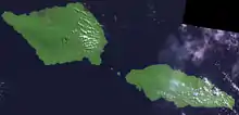 Samoa – sovereign island nation located in the western Samoan Islands archipelago in the South Pacific Ocean.[1] Previous names were Samoa from 1900 to 1919, and Western Samoa from 1914 to 1997. It was admitted to the United Nations on 15 December 1976.[2] The entire island group, inclusive of American Samoa, was known by Europeans as the Navigator Islands before the 20th century because of the Samoans' seafaring skills.[3][4]