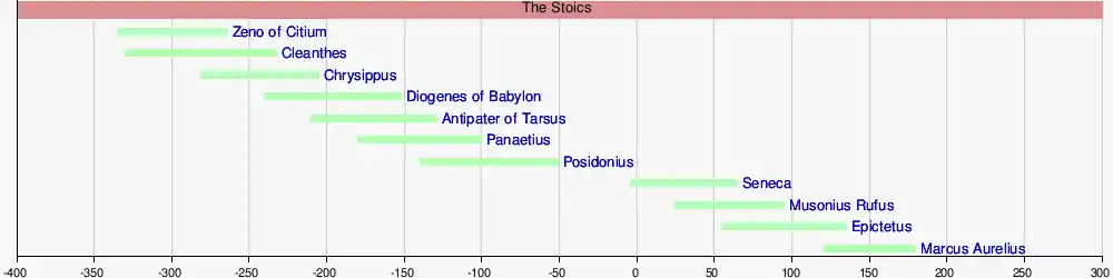 This is a list of Stoic philosophers, ordered (roughly) by date. The criteria for inclusion in this list are fairly mild. See also Category:Stoic philosophers.