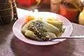 Điện Biên Phủ, Northwest Vietnam | Condiment | Based on Thai sauce, nam chim chaeo (or nam jim jaew) brought over by ethnic Thai people in Vietnam. Main ingredients are coriander, bird's eye chili, garlic, different herbs, hạt dổi and mắc khén (Indian prickly ash; a variety of Sichuan pepper). There are different types of chẳm chéo as well. Eaten with vegetables, meats, and sometimes fruit. |