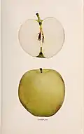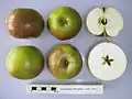 | American Golden Pippin (a.k.a. Golden Pippin, Ribbed Pippin, Golding, New York Greening, Newtown Greening, Golden Apple)[7] | ![]() |
