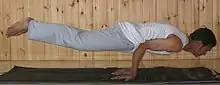 | Chaturanga Dandasana[47] | चतुरङ्गदण्डासन | Four-Limbed Staff Low Plank |