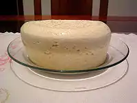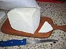 A Cypriot semi-hard, unripened brined cheese made from a mixture of goat and sheep milk, and sometimes also cow milk.[8][9][10][11] It has a high melting point and so can easily be fried or grilled. It is noted for its ability to retain its shape under direct heat, or as a "grillable" cheese. | |