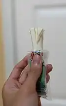 A firm, fresh goat milk cheese made in the Yunnan Province of China by people of the Bai and Sani (recognized as a branch of the Yi in China) minorities.[6] Pictured is fried rubing cheese. | |