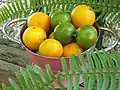 × Citrofortunella mitis | Calamansi, also known as calamondin, Philippine lime, or Philippine lemon, is an economically important citrus hybrid predominantly cultivated in the Philippines. It is native to the Philippines, Borneo, Sumatra, and Sulawesi in Indonesia in Southeast Asia, Malaysia as well as southern China and Taiwan in East Asia. |