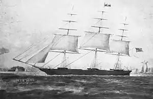 Among other characteristics which define a clipper is that they were usually ships in the strictest sense of the word. That is, they were three-masted vessels (though rarely four-masted) and were fully square-rigged on all masts.[2] Speedy contemporary vessels with other sail plans, such as barques, were also sometimes called clippers. Likewise, Baltimore clipper is a colloquial term most commonly applied to two-masted schooners and brigantines. The "Baltimore clipper" was actually invented before the appearance of clipper ships.[3] On the other end of the timeline are iron-hulled sailing ships which differ from clipper ships. The only iron-hulled examples present on this list are labeled as clippers by reliable sources.