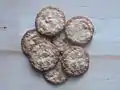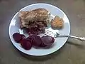 Lithuania | Small, knotted Jewish pastries boiled in a honeyed syrup and often filled with nuts or raisins and topped with shredded coconut. |