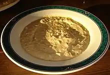 This is a list of notable food pastes. A food paste is a semi-liquid colloidal suspension, emulsion, or aggregation used in food preparation or eaten directly as a spread.[1] Pastes are often spicy or aromatic, prepared well in advance of actual usage, and are often made into a preserve for future use. Common pastes are curry pastes, fish pastes, some fruit preserves, legume pastes and nut pastes. Purées, however, are food pastes made from already cooked ingredients, as in the case of cauliflower purée, or raw, as in the case of apple purée.