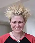 Also known as the 'fashion punk cut', the hairstyle is an approximation of a mohawk made without shaving or 'buzzing' the hair on the sides of the head, thus allowing an imitation of the look of a real mohawk not having to commit to removing most of one's hair. The name is a portmanteau of faux, the French word for false or fake, and 'mohawk'. |
