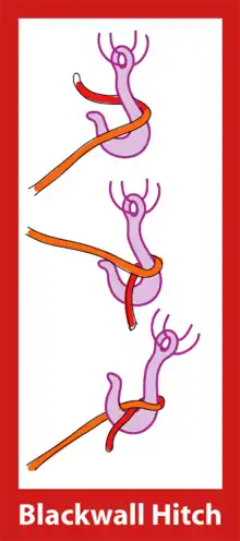 | Blackwall hitch | A temporary means of attaching a rope to a hook. | ![]() |