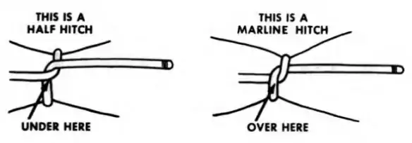 | Marline Hitching | A knot used to attach a rope to a cylindrical object. Similar in appearance to the Chain Hitch, but a succession of overhand knots. | ![]() |