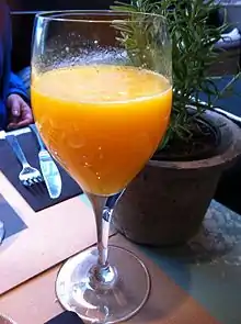 This is a list of juices. Juice is a liquid that is naturally contained in fruit and vegetables. It can also refer to liquids that are flavored with these or other biological food sources such as meat and seafood. It is commonly consumed as a beverage or used as an ingredient or flavoring in foods.