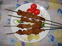 A popular meal of skewered and grilled cubes of meat.[47] |