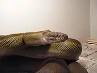 | 13 | Dark-spotted anaconda | Eunectes deschauenseei (sometimes confused with E. notaeus) | Boidae | 30 kg (66 lb) | 3 m (9 ft 10 in),[70][71] relatively reliable | ![]() | |