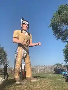 "Indian" in the stockade behind Fort Cody Trading Post has been a fixture along I-80 for decades at North Platte, exit 177.