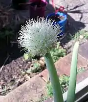 There are dozens of cultivars of the onion (Allium cepa), one of the most widely cultivated species of the genus Allium, But there are also other species cultivated as 'onions'. Many are named after the first person to breed them, or the locality they came from. Different localities often use their own common names for cultivars that are genetically almost identical. Sometimes different cultivars are known by the same common name (for example the name 'Chinese chives' could be referring to Allium odorum or Allium tuberosum). This list is based on the USDAs accepted classification.[1]