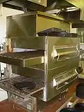 This is a list of oven types. An oven is a thermally insulated chamber used for the heating, baking or drying of a substance,[1] and most commonly used for cooking or for industrial processes (industrial oven). Kilns and furnaces are special-purpose ovens. Kilns have historically been used in the production of pottery, quicklime, charcoal, etc., while furnaces are mainly used in metalworking (metallurgical furnace) and other industrial processes (industrial furnace).