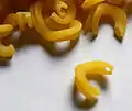Gomiti Elbow maccheroni, furrowed. From gomito, "elbow".[77] Chifferi