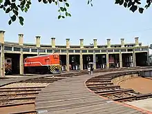 This is a list of railway roundhouses. A roundhouse is a building used for servicing locomotives, large, circular or semicircular structures often located adjacent to or surrounding turntables.