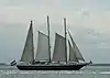 1943 | Tourism vessel; former British tugboat rebuilt as schooner | 3 masted gaff, square topsails | |||