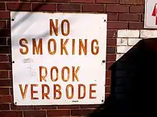 - 'No smoking' signs must be displayed prominently where there is a ban.[25]