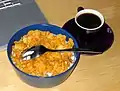 United States | A food made from processed grains that is often eaten cold, usually mixed with milk (e.g. cow's milk, soy milk, rice milk, almond milk), juice, water, or yogurt, sugar, and sometimes fruit, but may be eaten dry. |