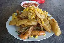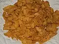 Bombay mix is the name used in the United Kingdom and Ireland for a traditional Indian snack known as chiwda, chevdo, bhuso (if made without potato), chevda or chivdo in India, or Chanāchura in Odisha and chanachur in Bengal. It consists of a variable mixture of spicy dried ingredients, which may include fried lentils, peanuts, chickpea flour noodles, corn, vegetable oil, chickpeas, flaked rice, fried onion and curry leaves. | |